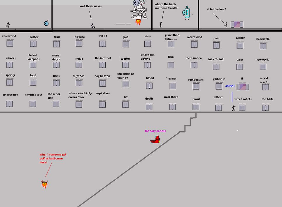 - You get major, major points for including "aether" as a door. But "the other side" should have been "the far side." Yes, I read every one of those doors. They were amusing.