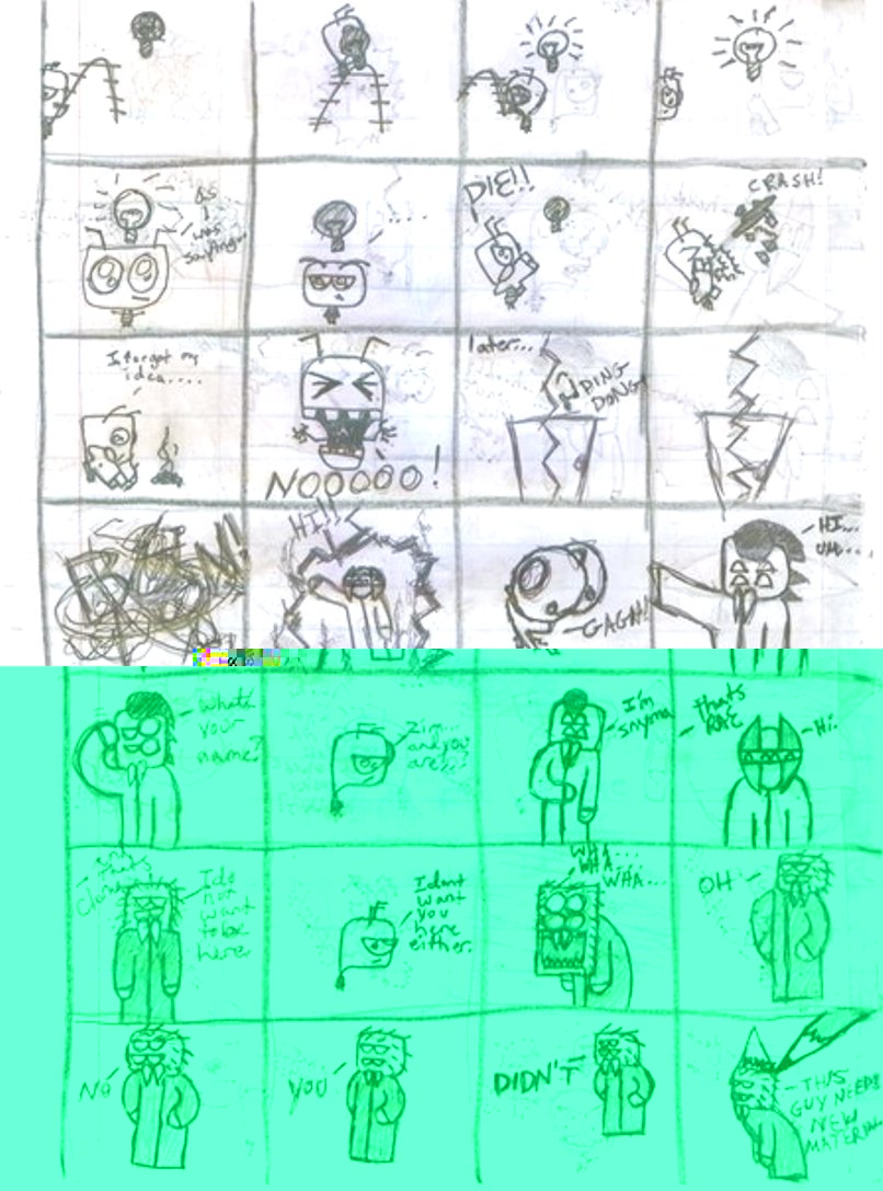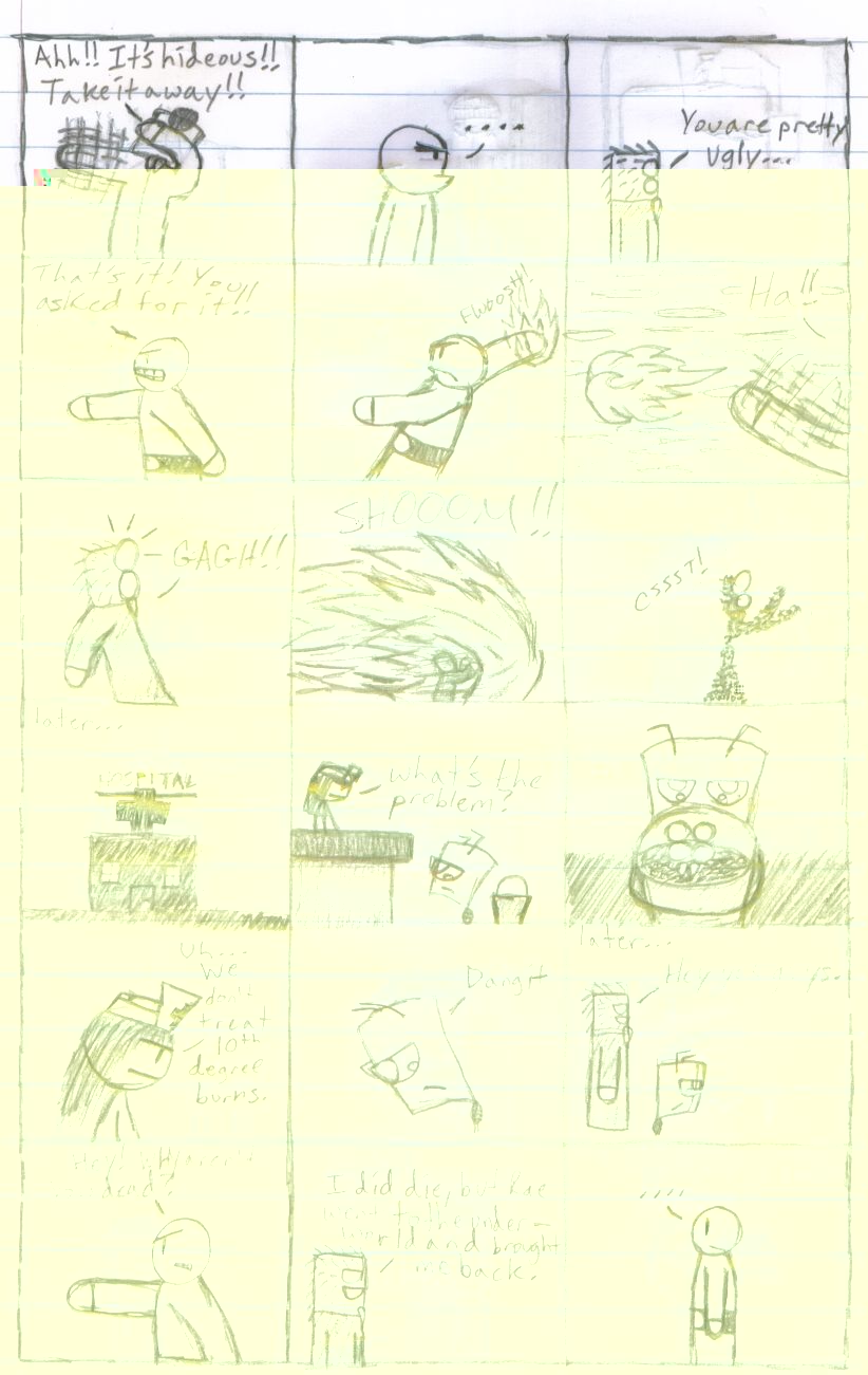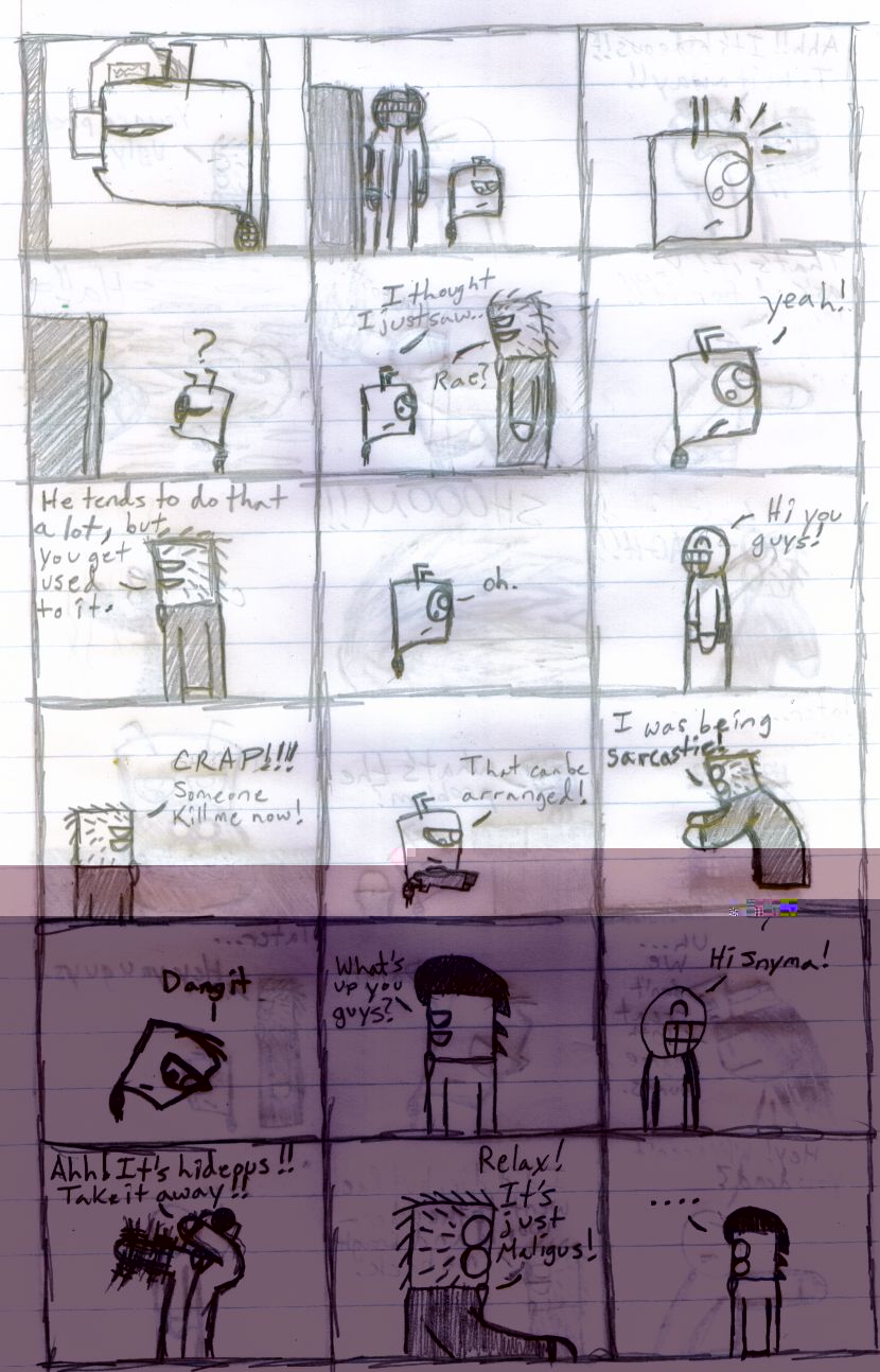 i know its random...but i cant help it...i hate drawing short comics so i draw comics in composition books and its just continuous string of comics and its hard to come up with a story line that keeps going for some 100 pages